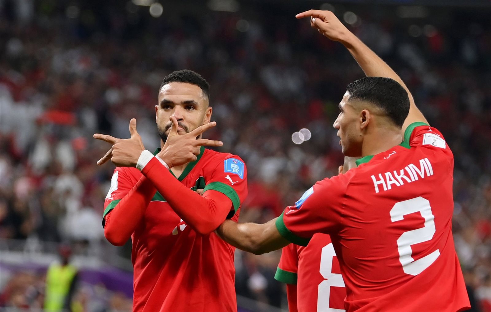 ونشر يوسف النصيري الذي رفع رصيده في كأس العالم إلى ثلاثة أهداف على حسابه في "إنستجرام"، صورًا لهدفه واحتفاله به وكتب عليها: "المستحيل ليس مغربيا!! سنقاتل من أجلكم ومن أجل أحلامنا إلى آخر رمق! ديما المغرب".
