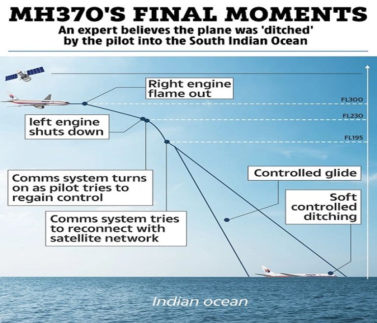 يعتقد جيلي أن الانزلاق كان محاولة متعمدة لإغراق الحطام بأقل قدر ممكن من الحطام، ويقول: "لماذا يريد شخص أن يطير بالطائرة في وسط المحيط الهندي؟