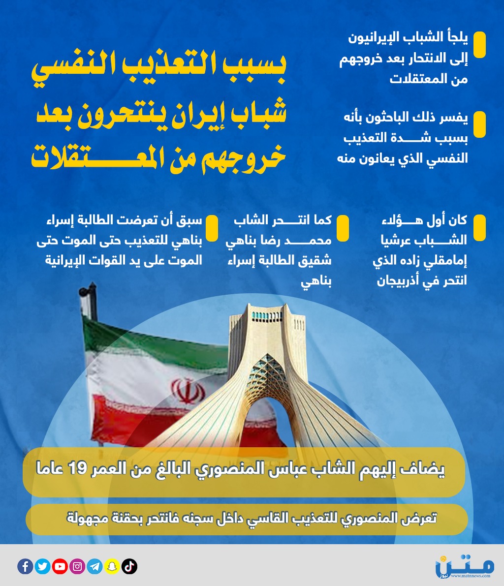 - يلجأ الشباب الإيرانيون إلى الانتحار بعد خروجهم من المعتقلات