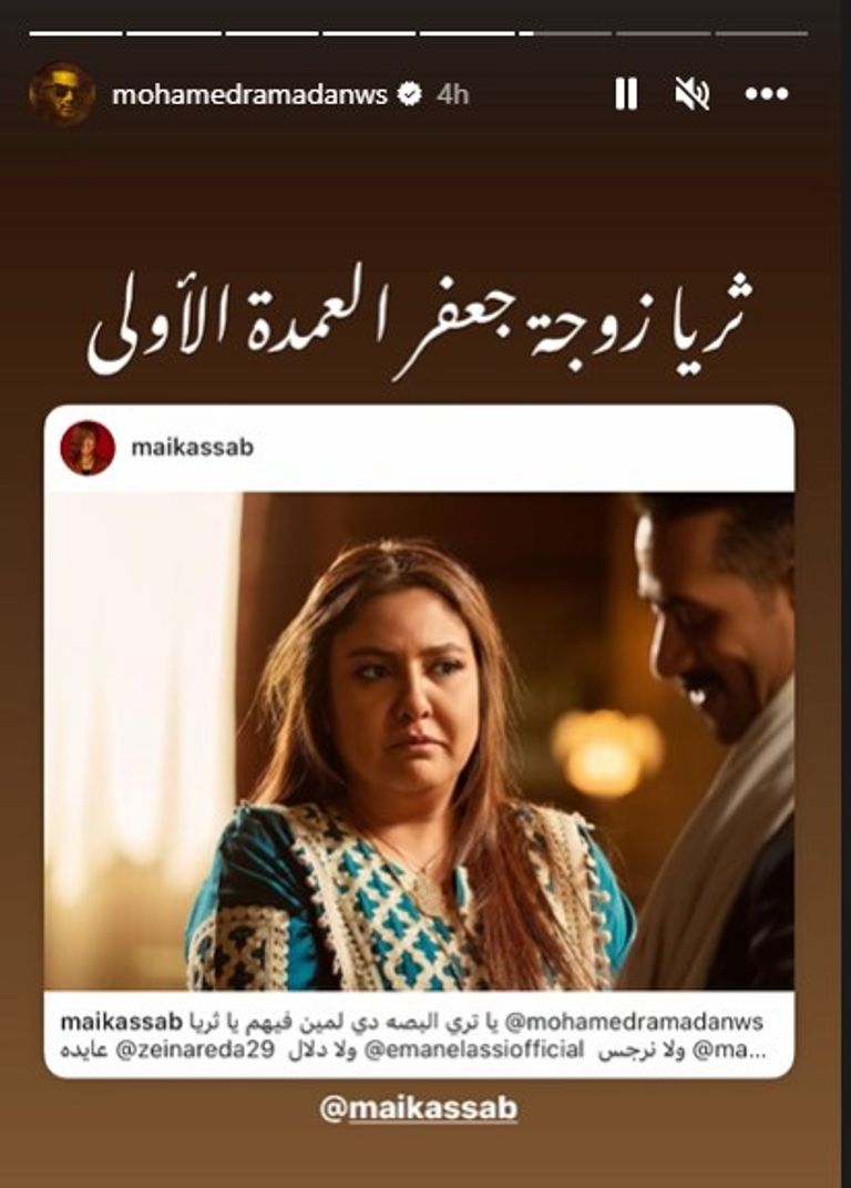 وفي ستوري على إنستجرام، كشف رمضان عن الفنانات اللاتي يجسدن أدوار زوجاته في المسلسل.