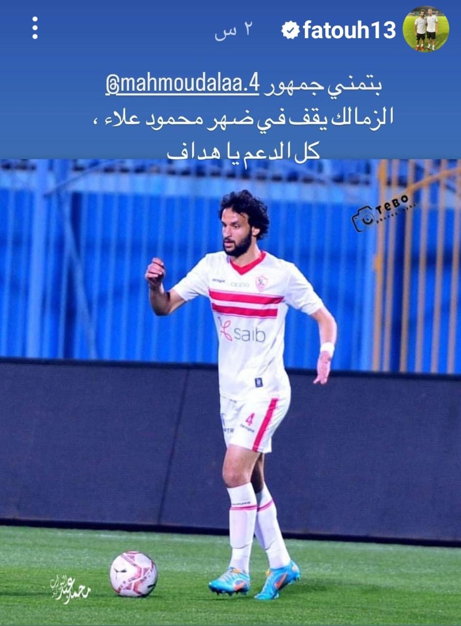 كما نشر أحمد فتوح علي صفحته بموقع انستجرام صورة لمحمود علاء وعلق عليه: " بتمني جمهور الزمالك يقف في ضهر محمود علاء، كل الدعم يا هداف".