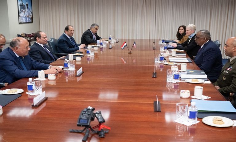 تهديدات إيران تتصدر مباحثات السيسي مع وزير الدفاع الأمريكي في واشنطن