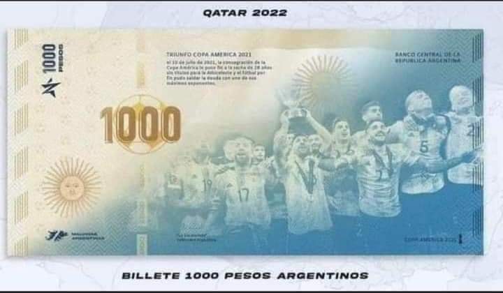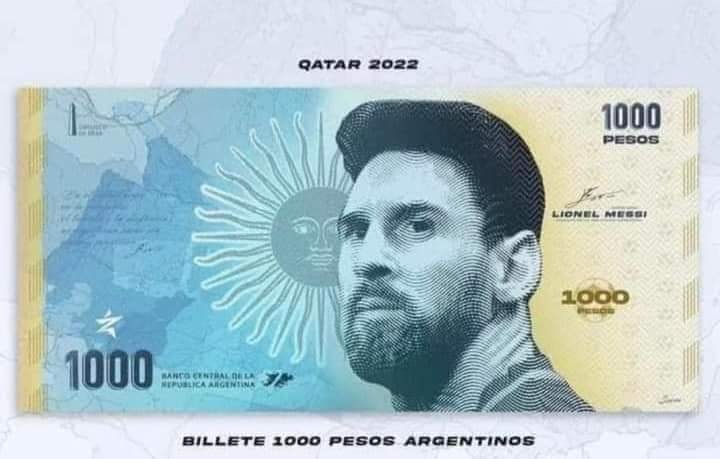 وقالت صحيفة "El Financiero" الأرجنتينية أن البنك المركزي لجمهورية الأرجنتين يدرس طرح صورة ميسي على ورقة 10 آلاف بيزو، حيث أن قيمة الـ1000 بيزو تساوي 5.75 دولار، وذلك احتفالا بأبطال العالم.