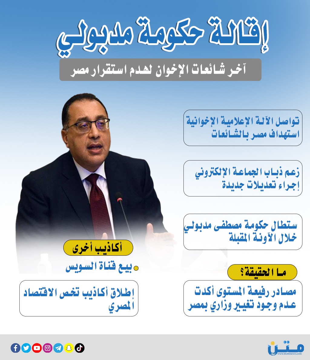 إقالة حكومة مدبولي.. آخر شائعات الإخوان لهدم استقرار مصر (انفوجراف)
