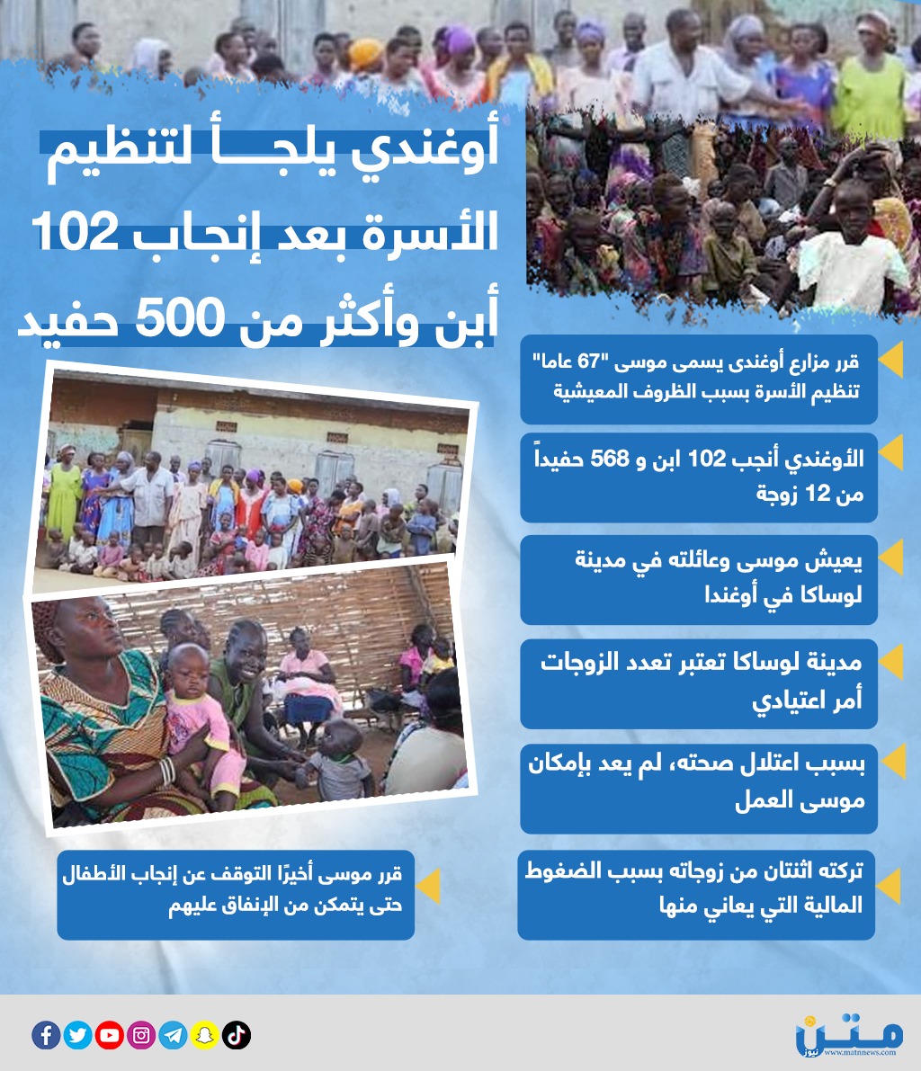 أوغندي يلجأ لتنظيم الأسرة بعد إنجاب 102 أبن وأكثر من 500 حفيد (إنفوجراف)