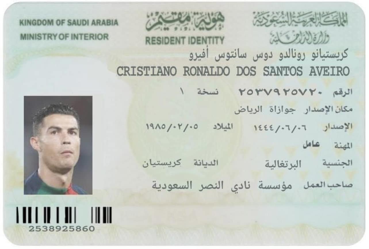 هوية كريستيانو رونالدو المتداولة بعد انضمامه لـ النصر السعودي