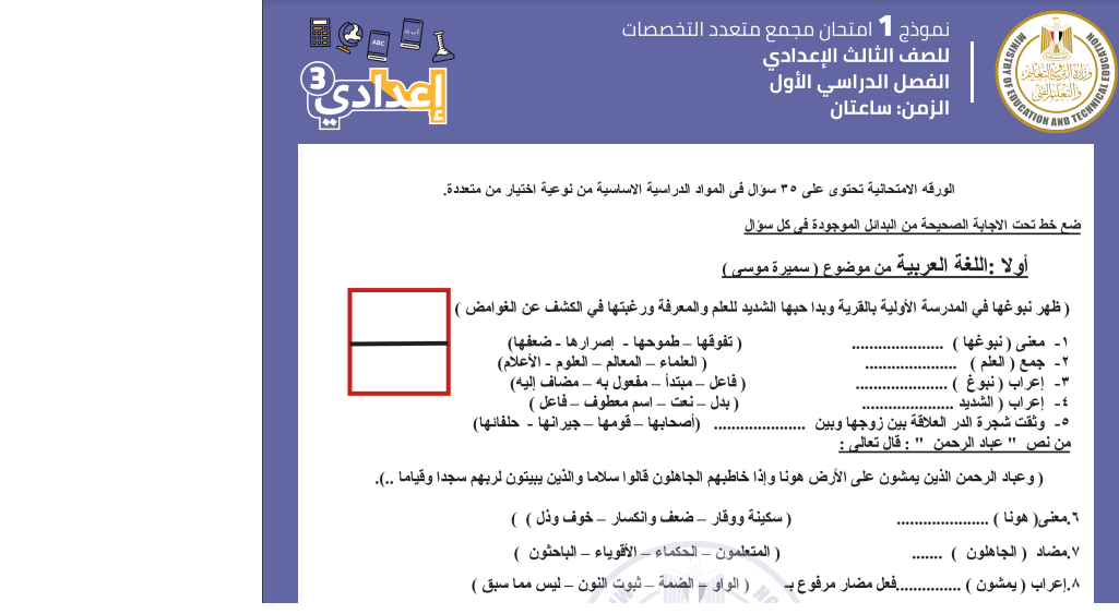 نماذج امتحانات الشهادة الإعدادية 2023 موقع وزارة التربية والتعليم