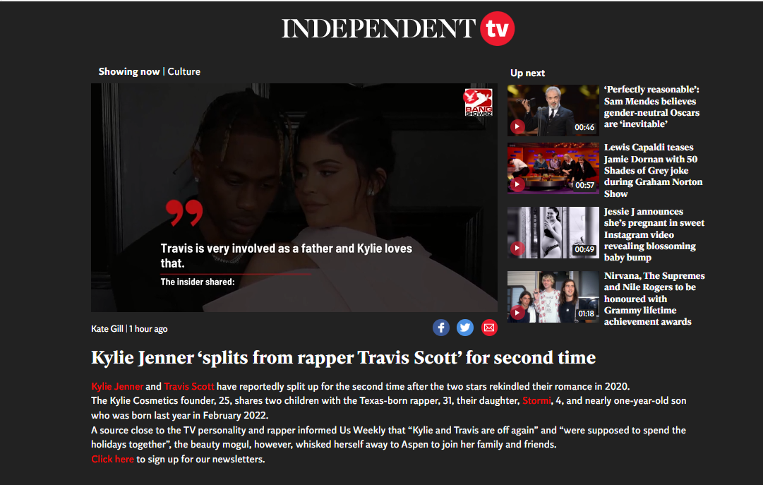 جاء ذلك بعدما كشفت تقارير صحفية عالمية بانفصال عارضة الأزياء الشهيرة كايلي جينر وحبيبها الفنان ترافيس سكوت بعد نحو سنة من حل الخلافات الشخصية السابقة وعودة العلاقة الرومانسية بينهما، وكان من المفترض أن يقضي الثنائي عطلتهما مع بعض، لكن كايلي ذهبت إلى أسبن لتكون مع عائلتها وأصدقائها عارضة الأزياء هايلي والنجم جاستن بيبر وستاسي كارانيكولاو، وفقا لموقع "إندبندنت".