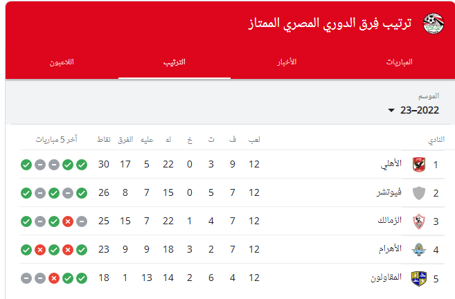 جدول ترتيب الدوري المصري بعد مباراة طلائع الجيش ضد المقاولون (صورة)