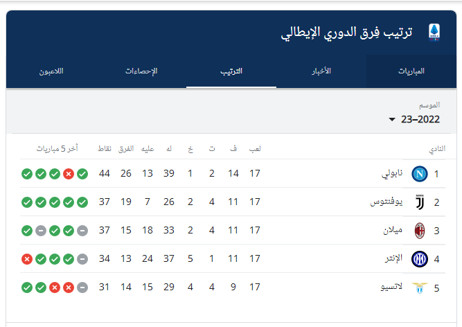 في المقابل يحتل سامبدوريا المركز الـ18 بجدول الترتيب برصيد 9 نقاط وسقط نابولى أمام إنتر ميلان، بهدف نظيف، فى المباراة التى جمعتهما على ملعب "جيوزيبي مياتزا"، ضمن منافسات الجولة السادسة عشر من الدوري الإيطالي، الذى عاد اليوم بعد توقف أستمر لاكثر من شهر ونصف، بسبب إقامة نهائيات كأس العالم 2022 فى قطر.