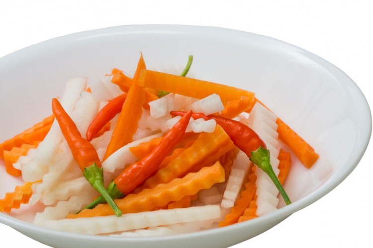 - يقشر الجزر ويقطع طوليا أو دائريا ويوضع داخل وعاء مخصص للتخليل.
