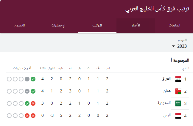 بعد مبارة منتخب السعودية العراق.. ما هو ترتيب بطولة كأس الخليج حتى الآن؟ (صورة)