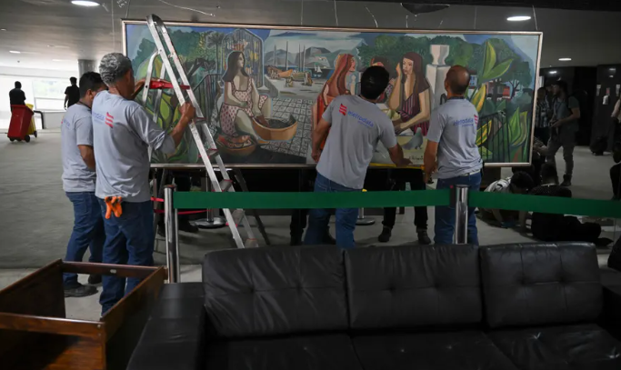 في متحف مجلس الشيوخ، ما زالت اللوحات مكتوبة: "من فضلك لا تلمس العمل الفني". لكن مثيري الشغب تجاهلوا هؤلاء عندما اقتحموا غرفة المعرض وبدأوا في تدمير مئات السنين من الفن البرازيلي والتاريخ السياسي.