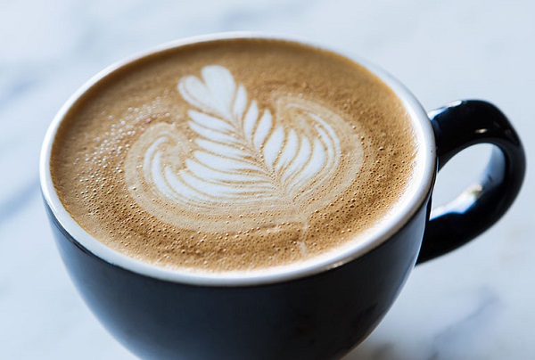 - نقلب القهوة والحليب ونسكبها في كوب التقديم ونضيف لها مزيج الحليب والقرفة بالرغوة.
