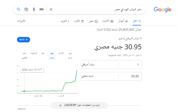 ووصل سعر الدولار حتى اللحظة إلى 32.03 جنيه مصري ليقترب من الـ 32 جنيه لأول مرة في تاريخ مصر.