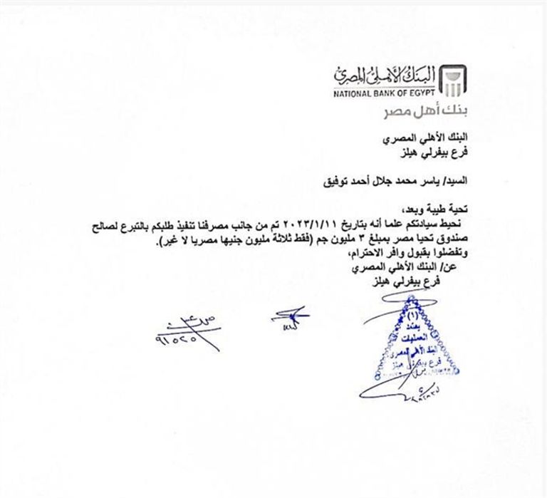 جاء ذلك بعدما تبرع الفنان المصري ياسر جلال أمس، بـ3 ملايين جنيه لصالح صندوق تحيا مصر.