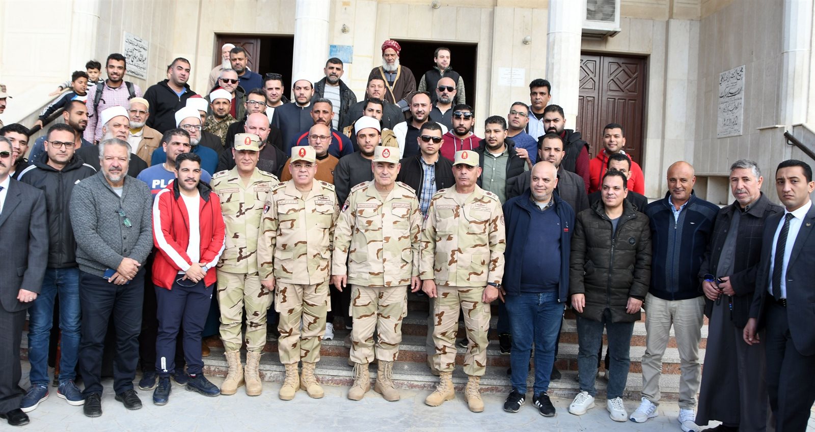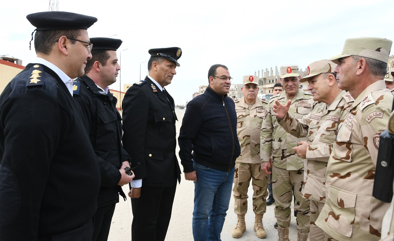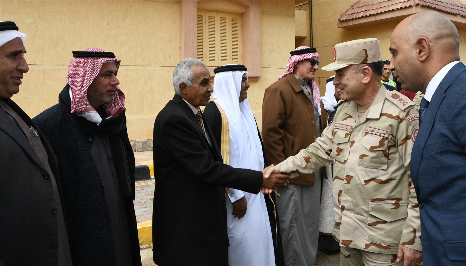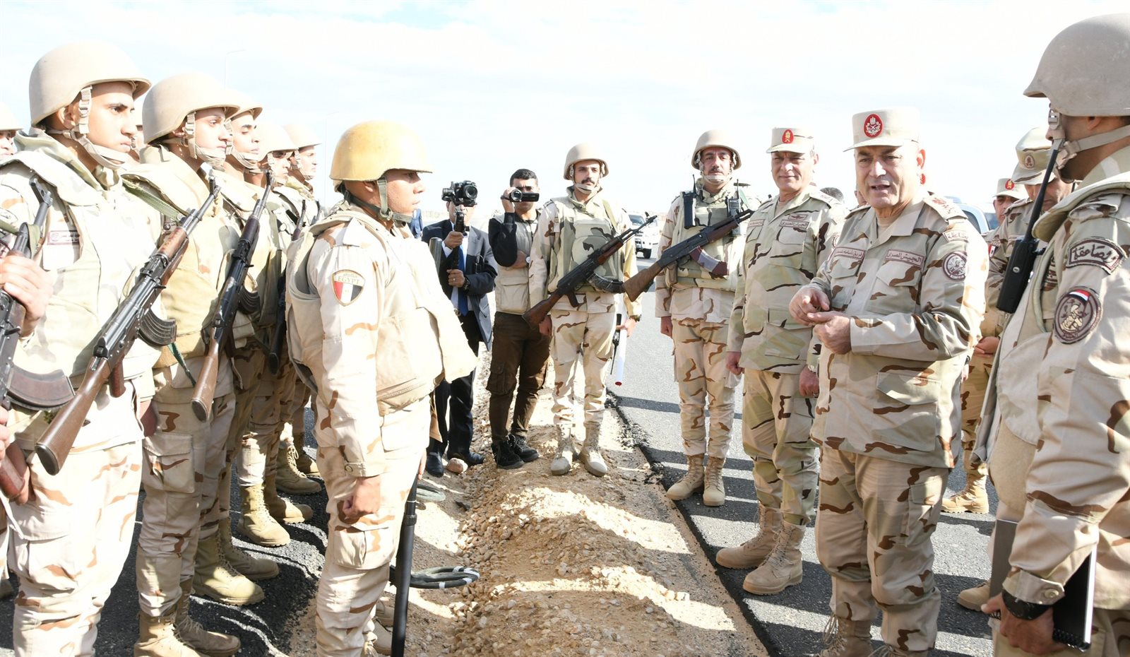 فى إطار المتابعة الميدانية التى تقوم بها القيادة العامة للقوات المسلحة المصرية، للإطمئنان على الحالة الأمنية ومظاهر الحياة الآمنة بشمال سيناء تفقد الفريق / أسامة عسكر رئيس أركان حرب القوات المسلحة عدد من المشروعات التنموية التى تشرف القوات المسلحة على تنفيذها وإلتقى بعدد من المهندسين والعمال المشرفين على المشروعات مشيدًا بمعدلات الآداء التى يتم تنفيذها على أرض الواقع، كما إلتقى بعدد من شيوخ وعواقل وأهالى سيناء مشيرًا إلى أنهم يمثلون خط الدفاع الأول يدًا بيد مع قواتهم المسلحة لصون مقدرات الوطن.