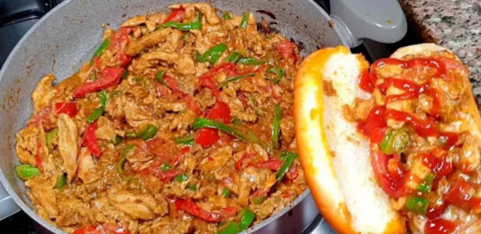 - قومي باستعمال صدور الدجاج المخلية وقطعيها شرائح طولية رفيعة.