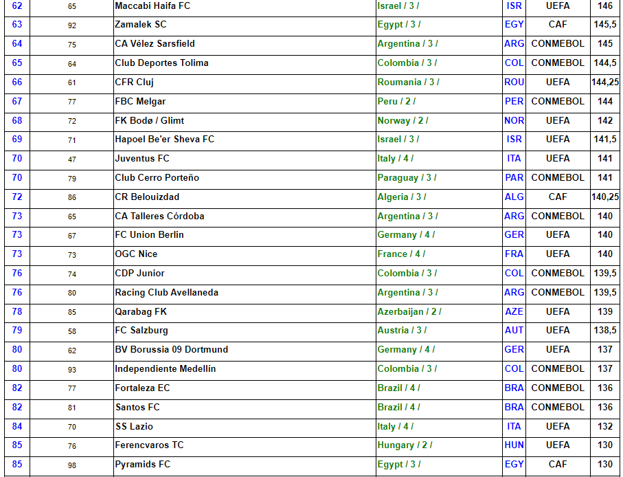 بينما احتل بيراميدز المصري المركز 85 في القائمة، بعدما احتل المركز الـ98 في تصنيف الشهر الماضي.