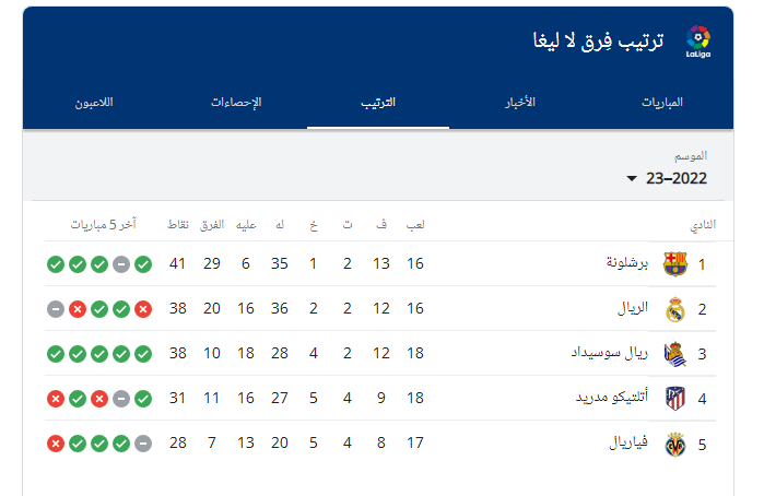 بعد مبارة أتلتيكو مدريد وبلد الوليد.. ما هو ترتيب فرق الدوري الإسباني؟