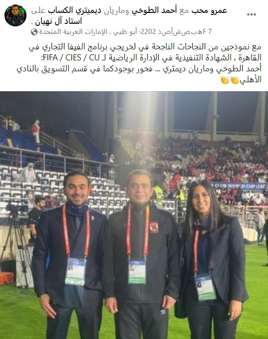 وبحسب تقارير صحفية مصرية، يدرس مجلس إدارة النادي الأهلي، تصعيد ماريان ديمتري، لمنصب مدير التسويق الذي يشغله أمير توفيق مع منصب مدير التعاقدات.