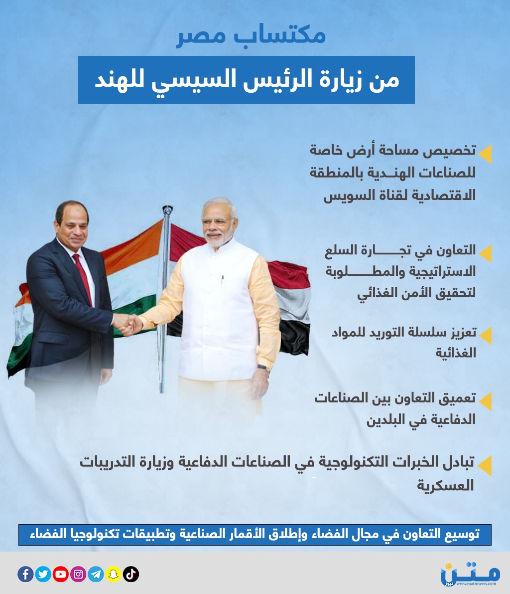 مكتساب مصر من زيارة الرئيس السيسي للهند (إنفوجراف)