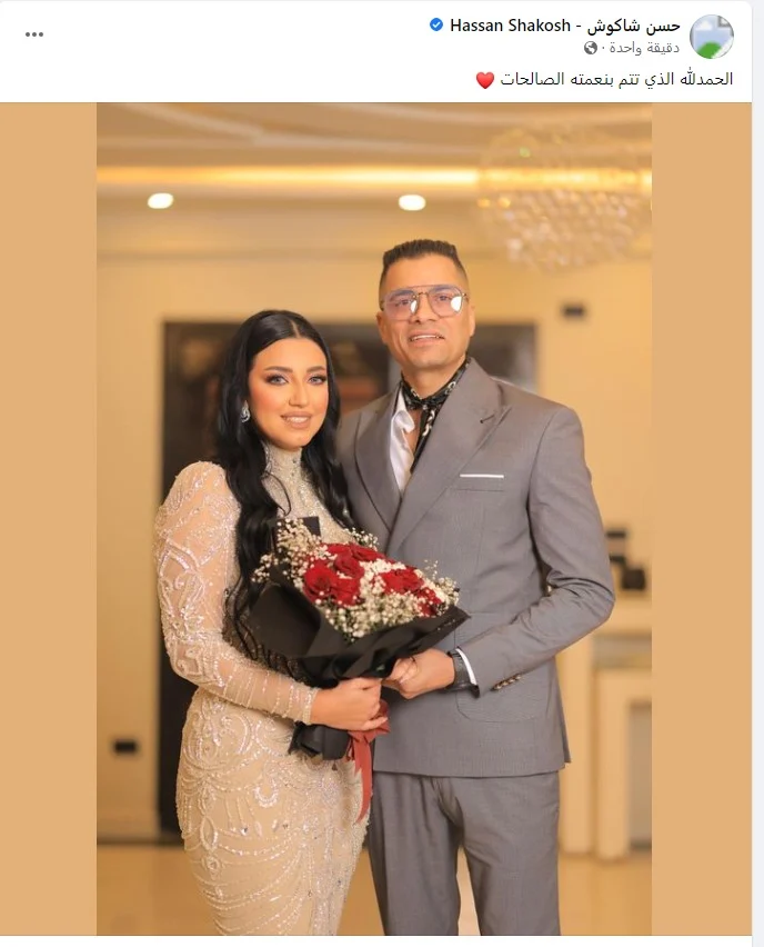 وفي أول تعليق لـ حسن شاكوش بعد خطبته، نشر صورة له رفقة خطيبته ريم طارق عبر صفحته الرسمية بموقع التواصل الاجتماعي فيس بوك، وعلق عليها قائلًا: الحمد لله الذي تتم بنعمته الصالحات.