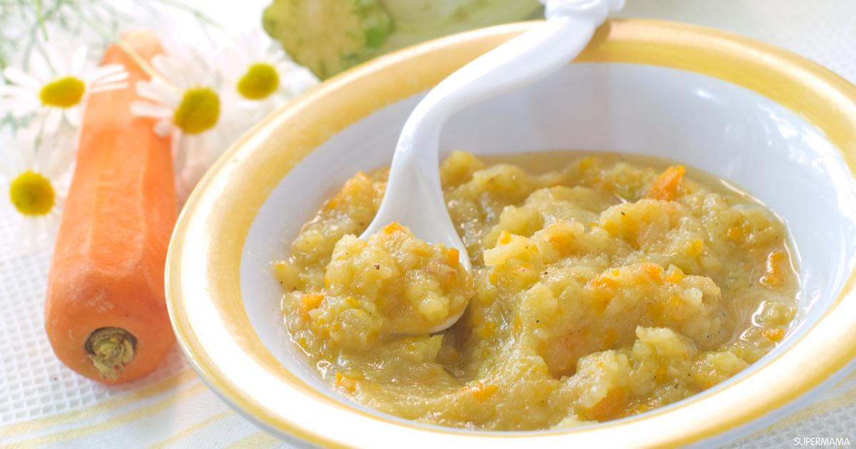 - شوربة الكوسا والبطاطس المهروسة وهي شوربة خضروات يتم تحضيرها بالماء أو بمرقة الدجاج دون ملح أو توابل.