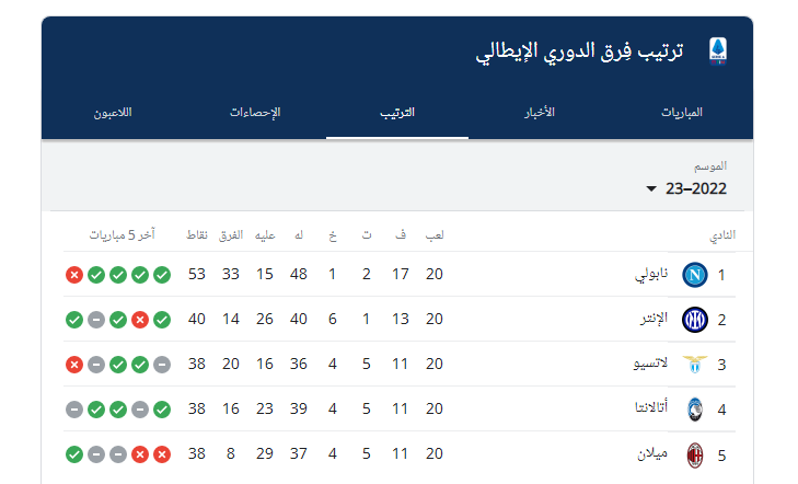 بعدما حقق فريق نابولي Napoli فوزًا مهمًا على روما.. ما هو ترتيب فرق الدوري الإيطالي 2022_2023؟