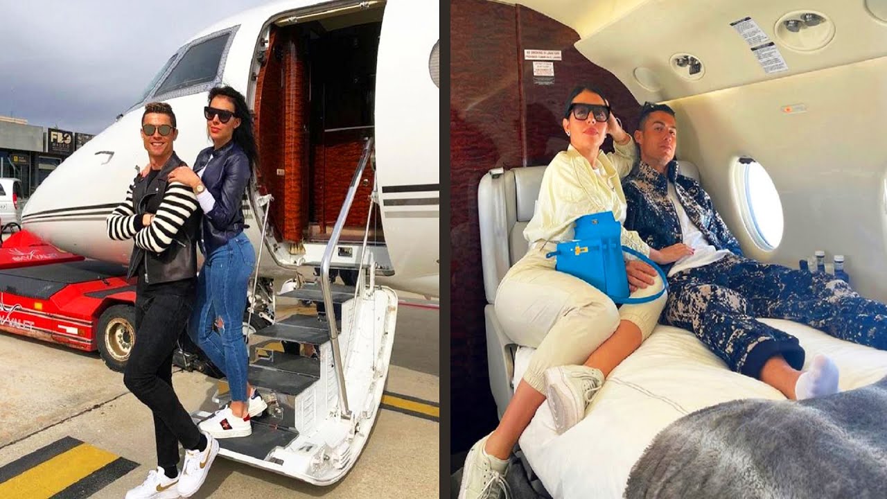 واستخدم كريستيانو وجورجينا الطائرة في انتقالاتهما للسعودية بعد توقيع اللاعب مع النصر بقيمة 200 مليون يورو سنويا.