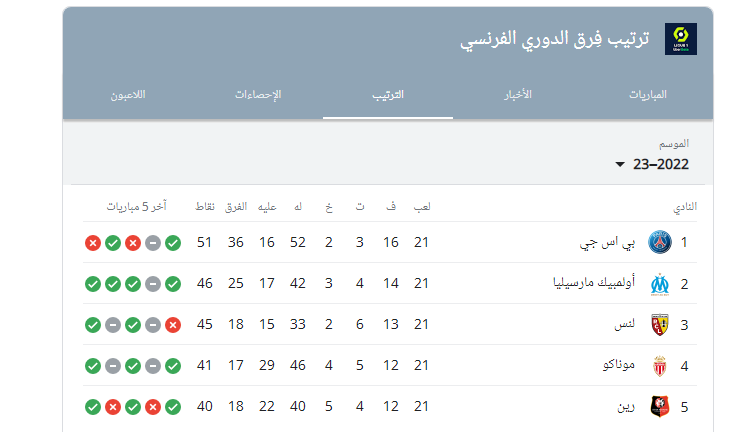 بعد باريس سان جيرمان.. ما هو ترتيب فرق الدوري الفرنسي؟