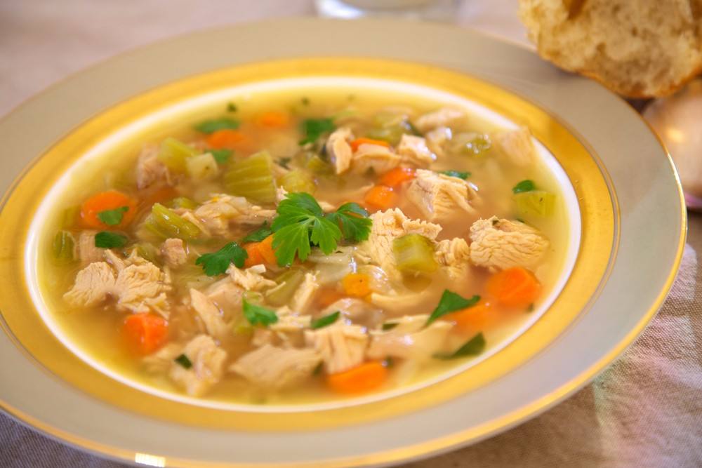 - تقدم شوربة الدجاج الذهبية وتشرب ساخنة عدة مرات بهدف التخلص من البرد في يوم.