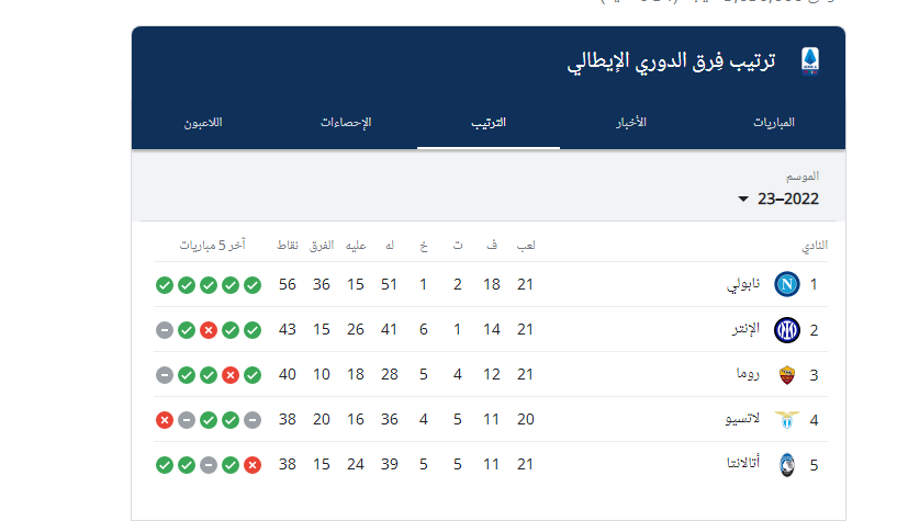 بعد مبارة الإنتر ضد ميلان Inter Milan.. ما هو ترتيب الدوري الإيطالي للموسم الجاري 2022-2023؟
