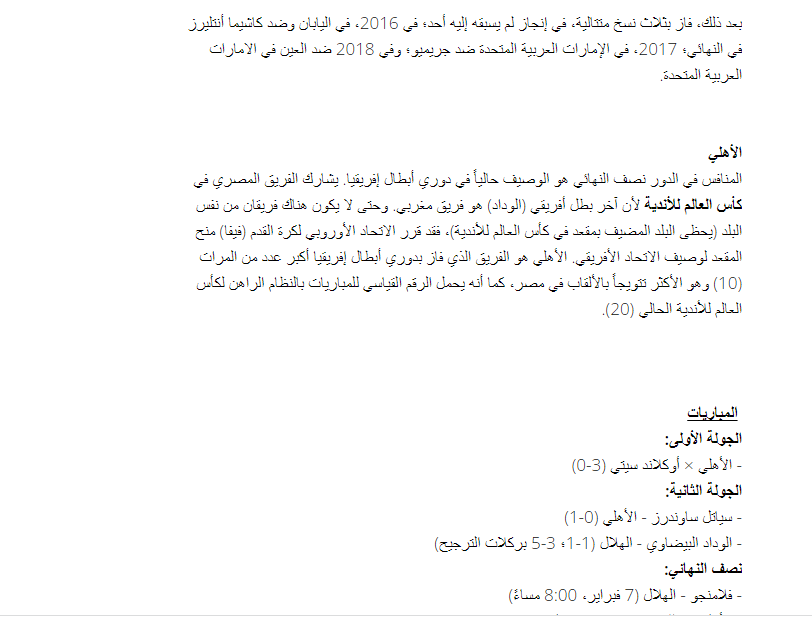 وأشار الموقع إلى أن الأهلي وصل إلى هذا الدور بعد الفوز على أوكلاند سيتي بثلاثة أهداف دون رد، ثم فاز على سياتل الأمريكي بهدف نظيف.