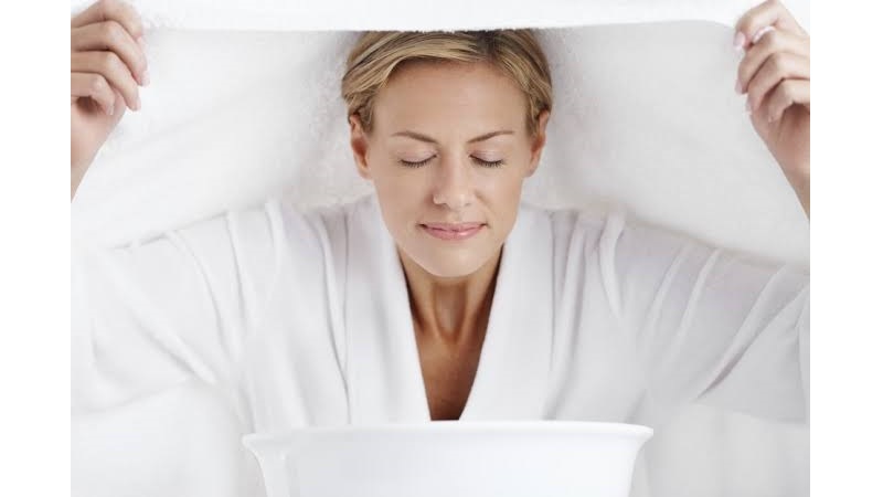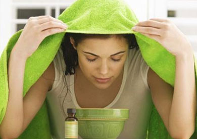 - ينبغي وضع منشفة على الرأس لاحتجاز البخار وتغلغله في مسامات البشرة شرط الابتعاد عن البخار مسافة آمنة لا تسبب التهابات أو حروق للبشرة.