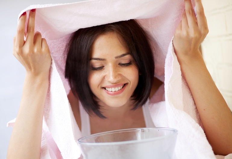 - اقتربي بوجهك نحو البخار المتصاعد من الماء الساخن ولكن اتركي مسافة آمنة.