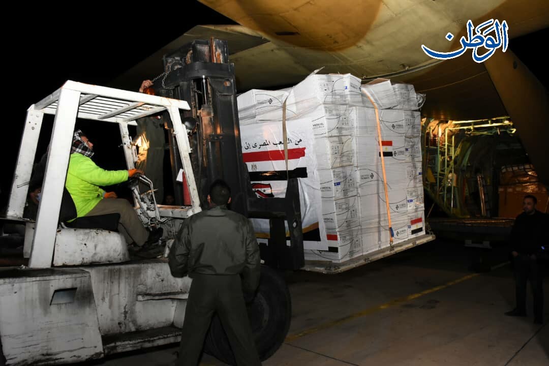 وهبطت 3 طائرات نقل عسكرية للقوات الجوية المصرية في مطار دمشق، وأفرغت حوالي 52 طنا من المساعدات الطبية والإنسانية.