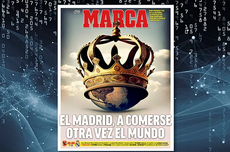 صحيفة "ماركا" الإسبانية قامت للمرة الأولى في تاريخها بصنع غلاف صفحتها الرئيسية عبر تقنيات الذكاء الاصطناعي، وذلك في يوم المباراة المرتقبة بين ريال مدريد والأهلي.