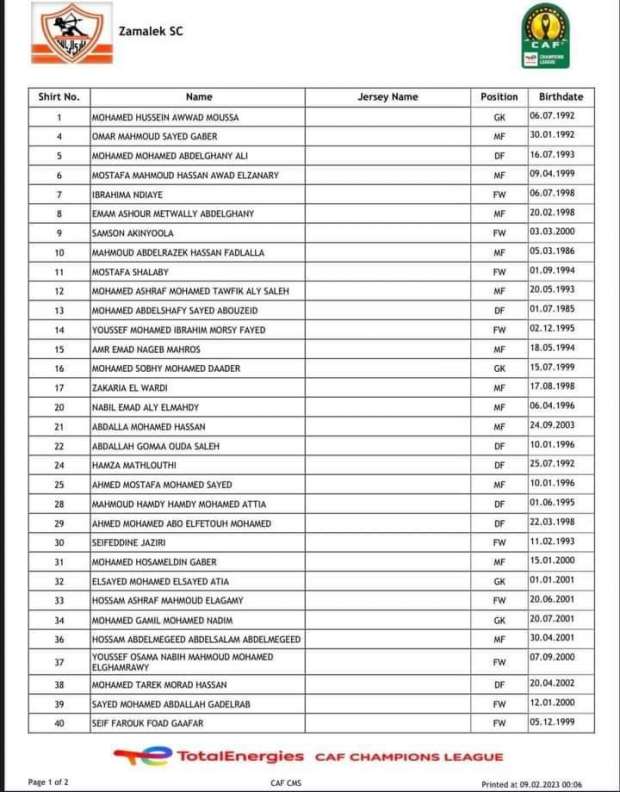 كما تضمنت قائمة الزمالك الإفريقية النهائية، الثلاثي إمام عاشور وزكريا الوردي وحسام أشرف، رغم رحيلهم عن القلعة البيضاء مؤخرًا.