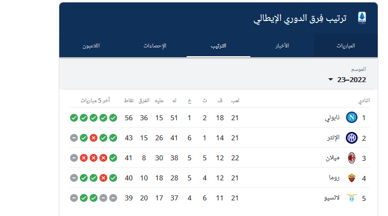 ما هو ترتيب فرق الدوري الإيطالي قبل مباريات اليوم السبت؟