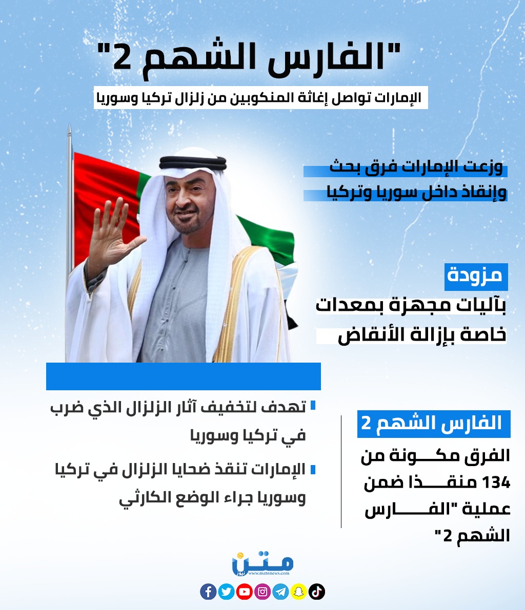 "الفارس الشهم 2".. الإمارات تواصل إغاثة المنكوبين من زلزال تركيا وسوريا (انفوجراف)