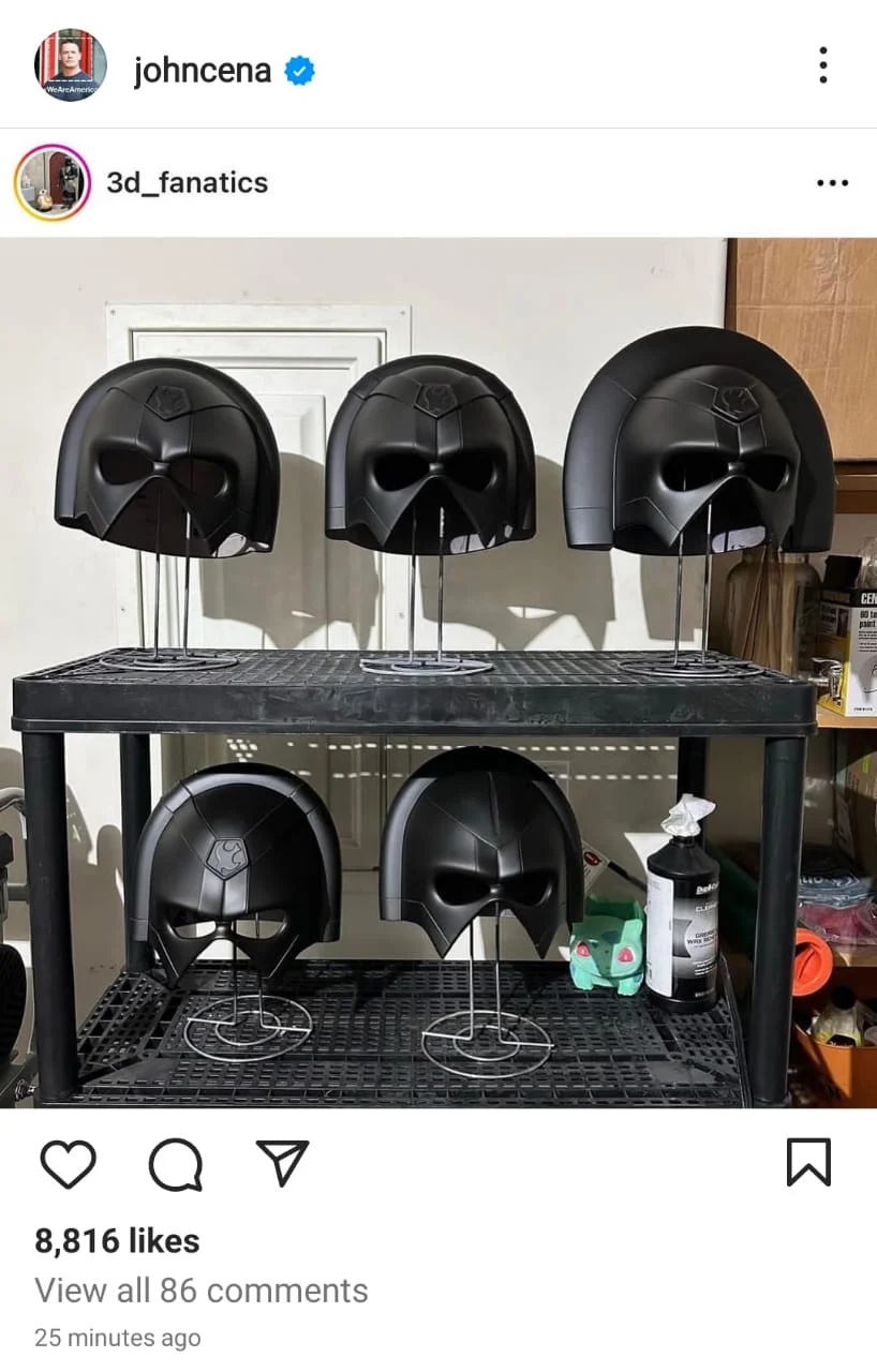 جاء ذلك بعدما نشر جون سينا، صورة عبر حسابه الرسمي على تطبيق انستجرام، لعدة أقنعة للوجه، قام بتصميمها أحد المتخصصين في هذا المجال، ويدعى كريستسيان مارتينيز.
