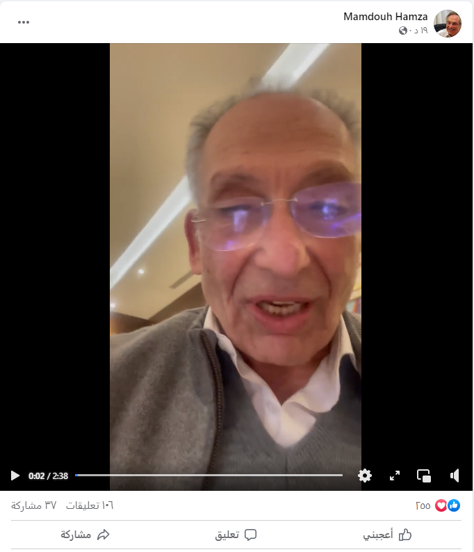 وأعلن ممدوح حمزة وصوله إلى مصر عبر فيديو نشره على صفحته الشخصية، بموقع التواصل الاجتماعي فيس بوك، معربا عن سعادته بعودته إلى مصر مرة أخرى.