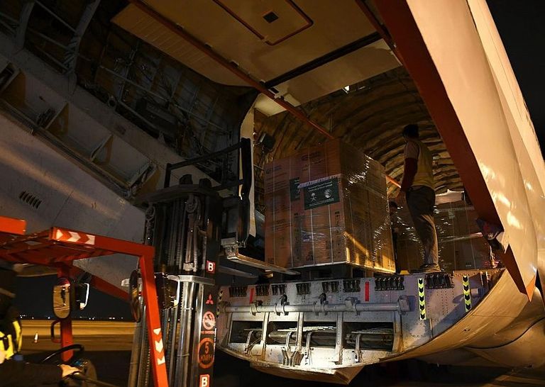 حيث تحمل الطائرة على متنها مواد غذائية وطبية وإيوائية تزن 35 طنًا و322 كيلو جرامًا ضمن الجسر الإغاثي السعودي الذي يسيّره مركز الملك سلمان للإغاثة والأعمال الإنسانية لمساعدة متضرري الزلزال في سوريا وتركيا.