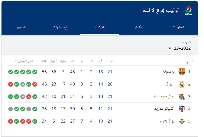 تزايد البحث حول ترتيب بطولة الدوري الإسباني في الموسم الحالي 2022_2023 خلال الساعات الماضية.