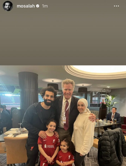 ونشر محمد صلاح عبر صفحته الرسمية على "إنستجرام" صور له وأسرته بجانب الممثل الأمريكي المشهور ويل فيريل عقب انتهاء ديربي الميرسيسايد.