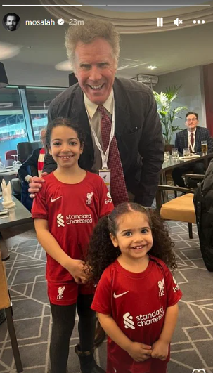 والتقط صلاح الذي كان برفقة زوجته وابنتيه مكة وكيان، الصور مع الممثل الأمريكي ويل فيريل، في أعقاب ديربي المرسيسايد بين ليفربول وإيفرتون.