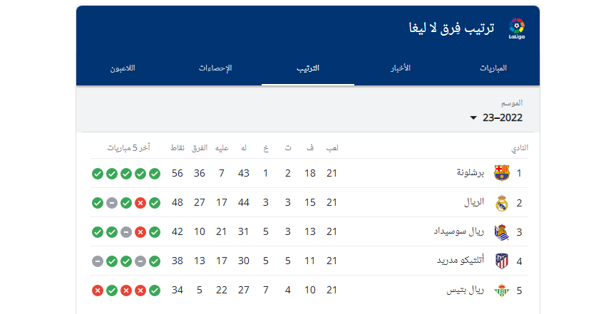 الدوري الاسباني 2022_2023 بعد مباراة ريال مدريد وإلتشي
