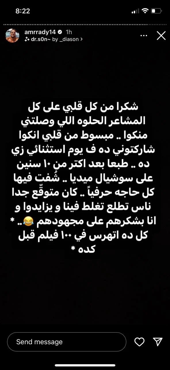 وردّ عمرو راضي، على تلك الانتقادات عبر حسابه الشخصي على إنستجرام قائلًا: شكرًا من كل قلبي على كل المشاعر الحلوة اللي وصلتني منكم.. مبسوط من قلبي إنكوا شاركتوني ده.. طبعًا بعد 10 سنين على السوشيال ميديا.. شوفت فيها كل حاجة حرفيًا.. كان متوقع جدا ناس تطلع تغلط فينا ويزايدوا.. أنا بشكرهم على مجهودهم.