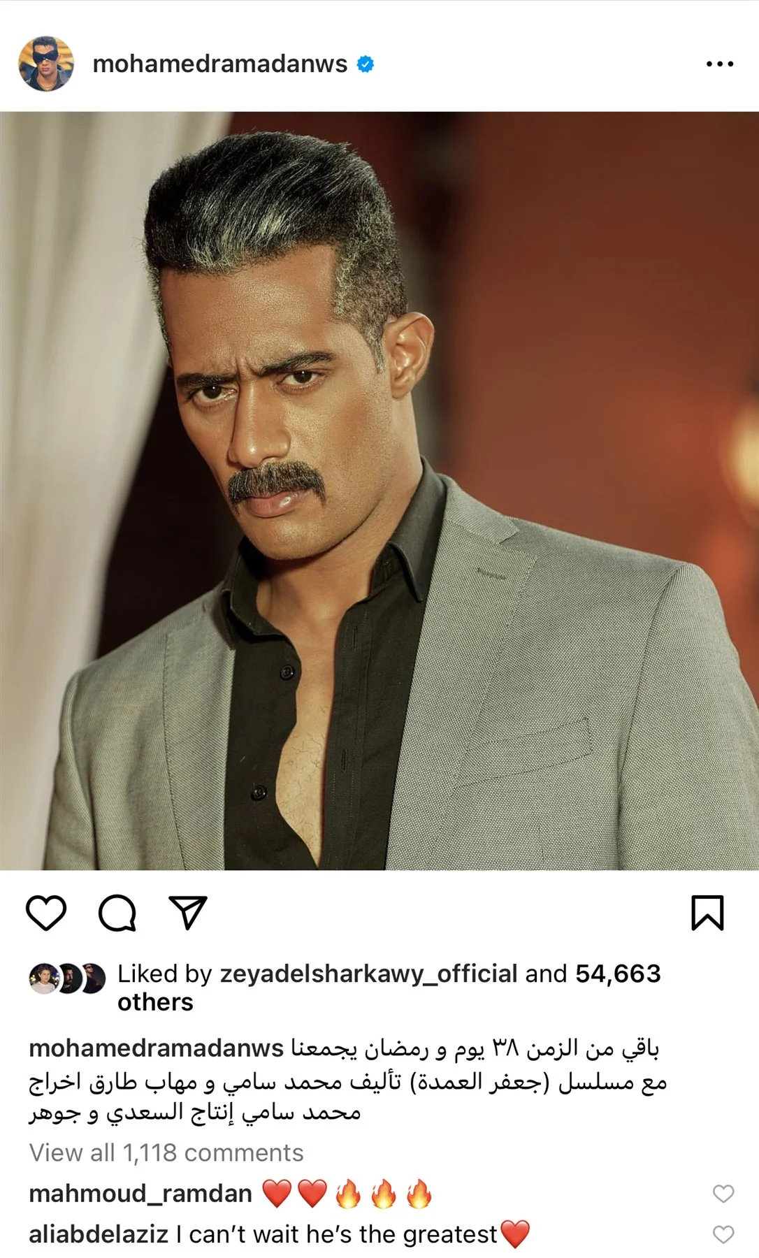 حيث نشر الفنان المصري محمد رمضان صورة من كواليس المسلسل، وعلق عليها كاتبًا: “باقي من الزمن ٣٨ يوم ورمضان يجمعنا مع مسلسل “جعفر العمدة” تأليف محمد سامي ومهاب طارق اخراج محمد سامي إنتاج السعدي وجوهر”.